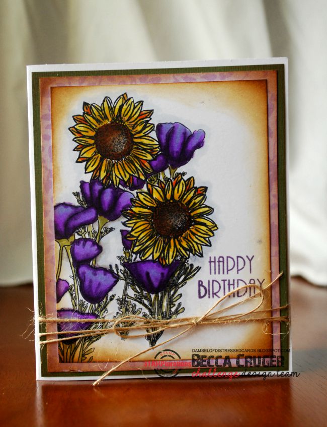 ReplyDeleteLove the sunflower...it looks great with the purple flowers...great card Becca.
