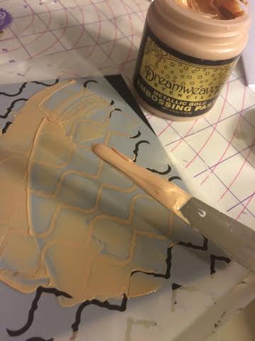 For some reason, I've always loved the black and gold color combo. It looks so striking! So I decided to whip out my brand spankin' new jar of gold embossing paste and slathered it through the STAMPlorations foiled stencil.
