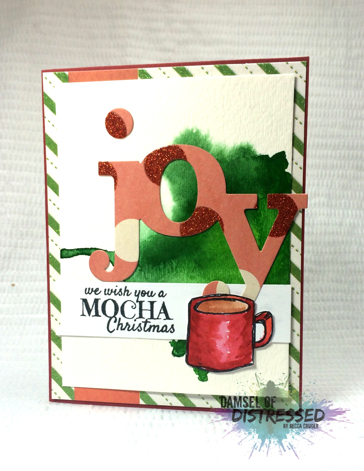 I used the Winnie and Walter Joy die and added a sentiment from my a set I designed alllll by myself... STAMPlorations Big Grins by Becca Cruger Caffeinated Christmas.