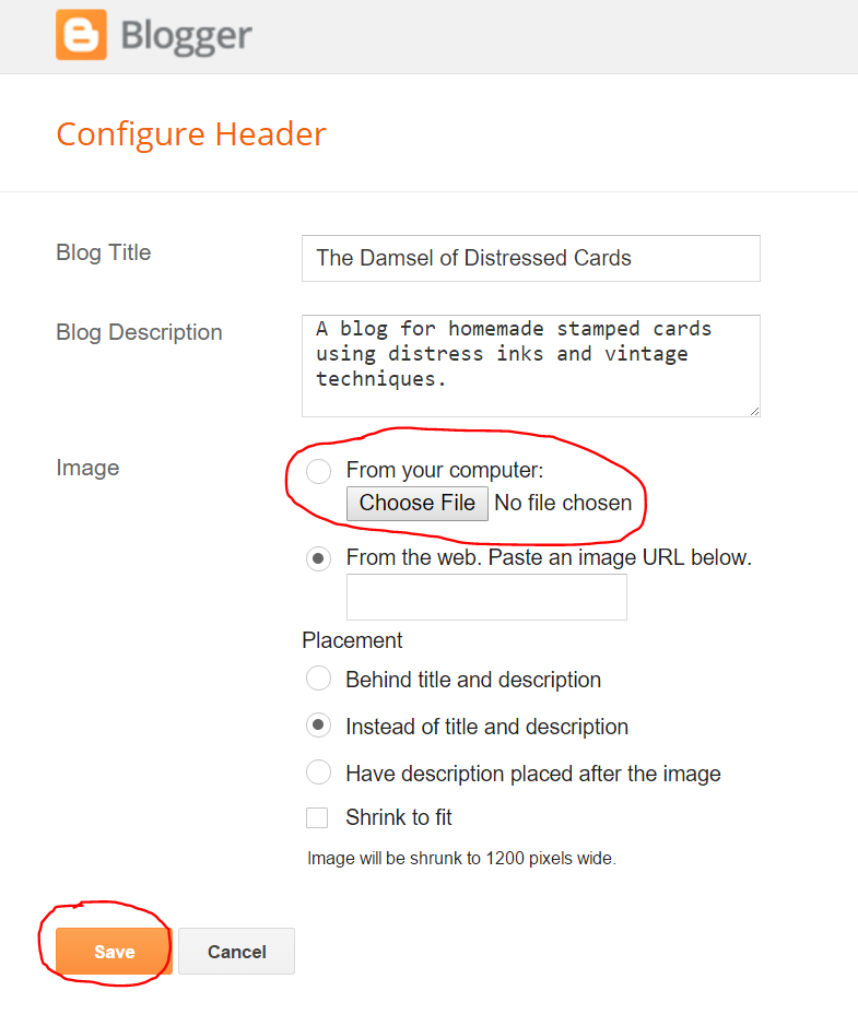 A pop-up box will... well... pop up. Click on "Image from your computer" then tap the "choose file". Upload your image, hit save, and VOILA! You're done.
