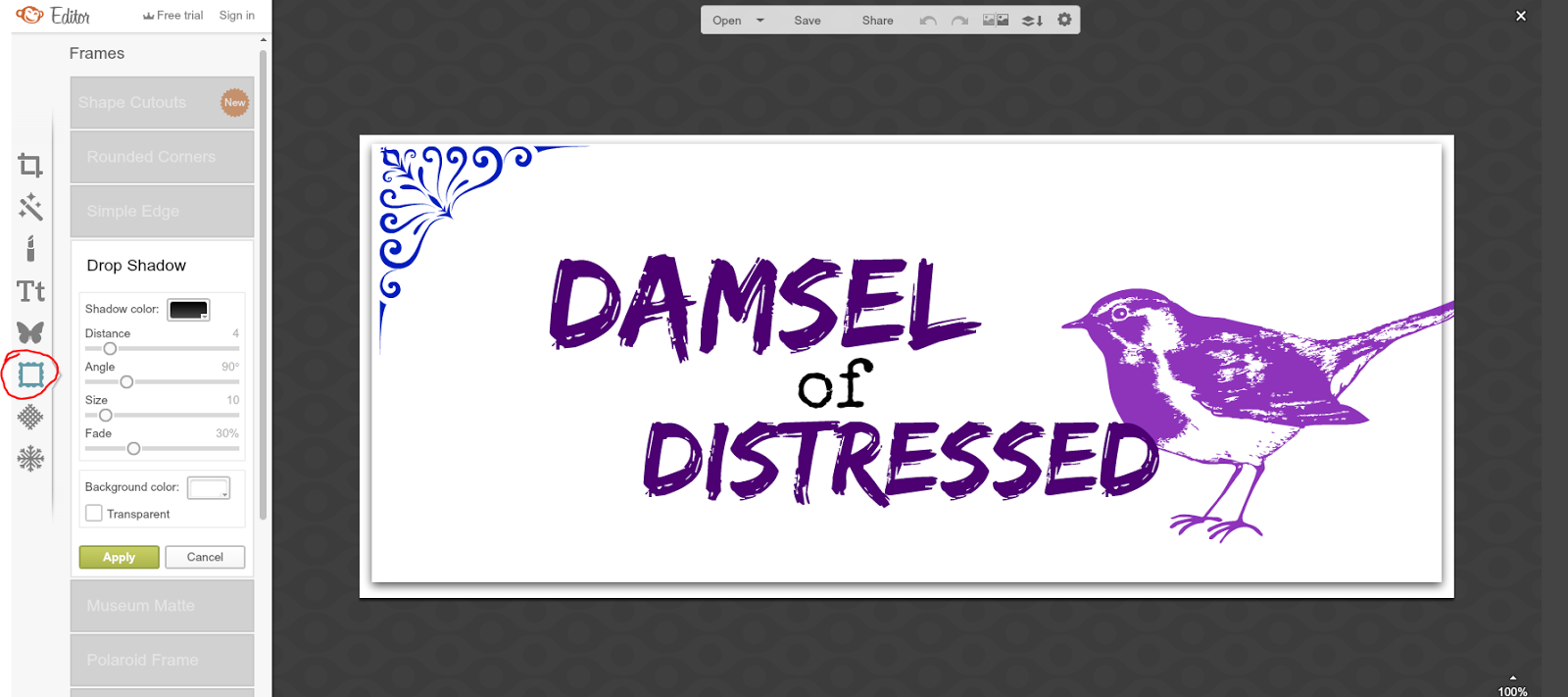 You can play around with borders. Different shapes and colors are available. This one is the Drop Shadow border.