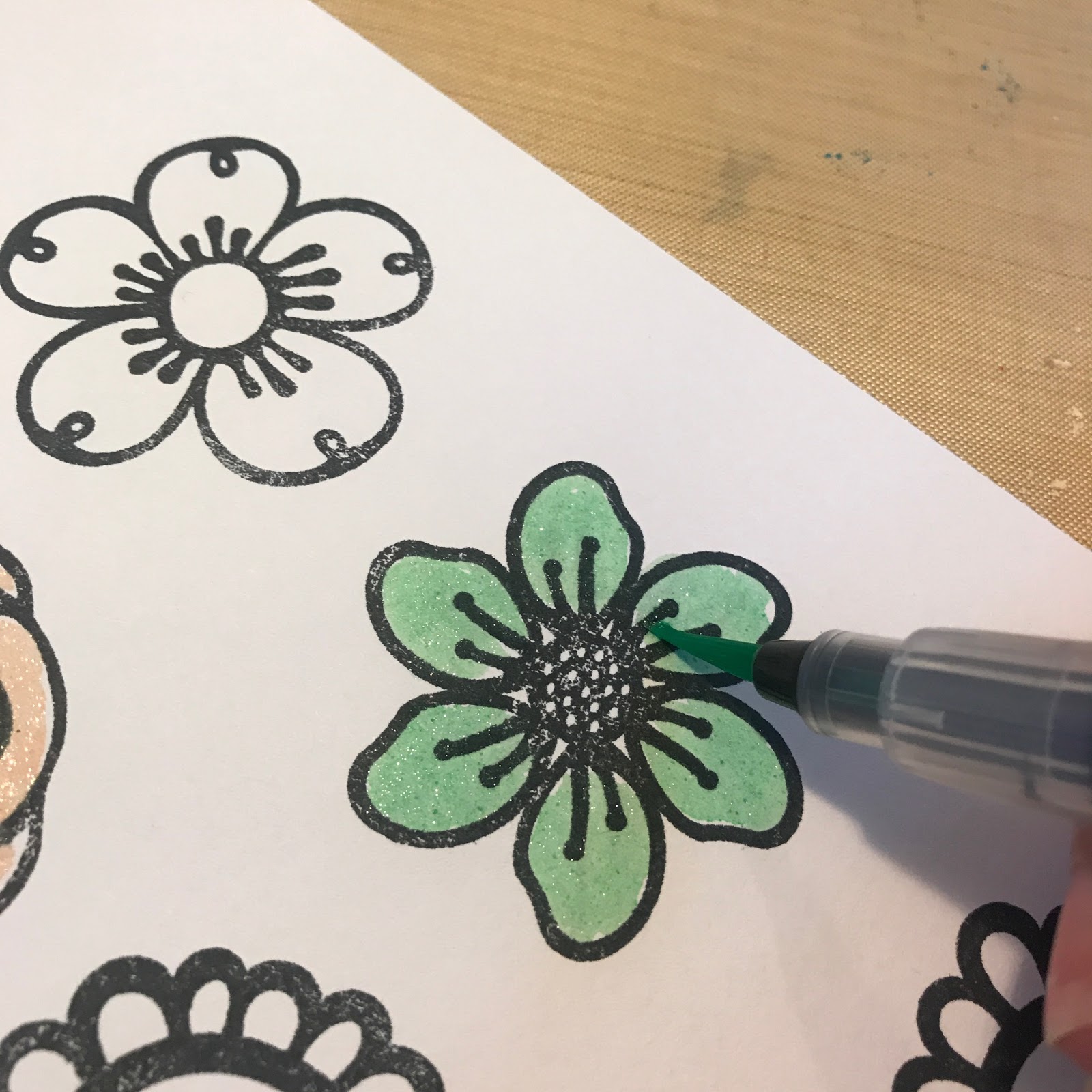 Next, I used some Spectrum Noir alcohol markers to color in my image and smudged up my outside edges with black Faber Castell Gelatos.